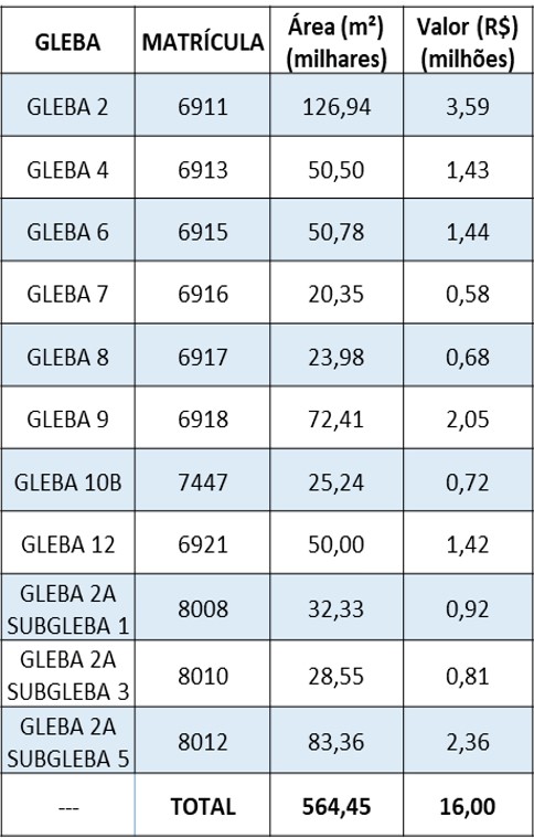 Área total dos Terrenos: 564.445 m²